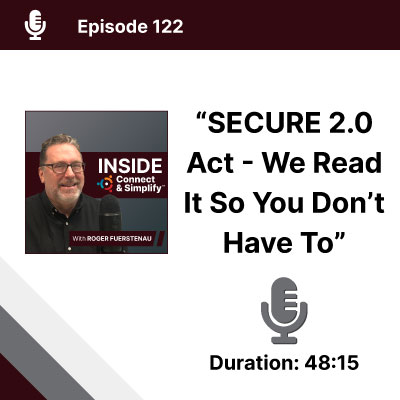 Listen as Roger Fuerstenau and Paul Dowd, CIMA®, AIF® discuss the SECURE 2.0 Act and the dozens of changes that it brings for 2023, 2024 and beyond. What is the goal of this act? What impact is there on your business and your retirement plan? Tune in and learn about the 400+ pages of how this act affects your retirement plan now and into the future. You don’t want to miss it!